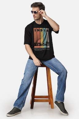 Upgrade your daily attire with this men's oversized t-shirt. Crafted from premium cotton fabric, this t-shirt ensures utmost comfort all day long. Its evergreen round neck style and comfortable fit make it suitable for various occasions, be it work or a casual hangout with friends. Half sleeve design enhances breathability, keeping you cool and comfortable. Available in black, this half sleeve round neck style oversized printed t-shirt is an essential addition to every men's wardrobe.