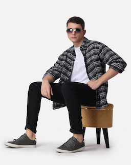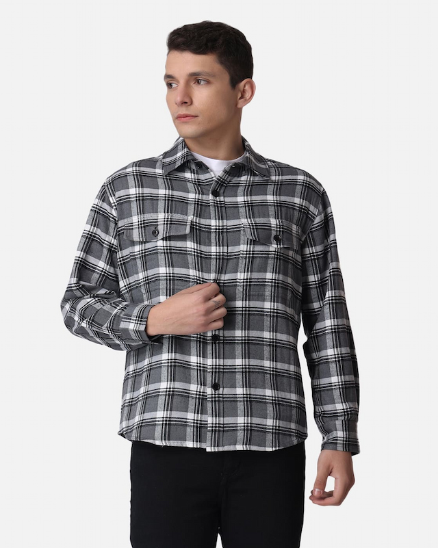 • Product Name: Dark Grey and Black Drop Shoulder Flannel Cotton Full Sleeves Shirt