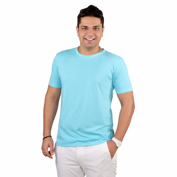 Men Solid Sky Blue t-shirt. Elevate this look by putting on this royal blue T-shirt with a pair of chinos and sneakers to feel both comfortable and stylish. The model (height 5’9) is wearing a size Medium. Material: Cotton fabric Wash: Machine and hand Wash in Cold water, Do not bleach, and Dry in the shade Fabric : cotton Round neck T-shirt Half sleeves; regular sleeves